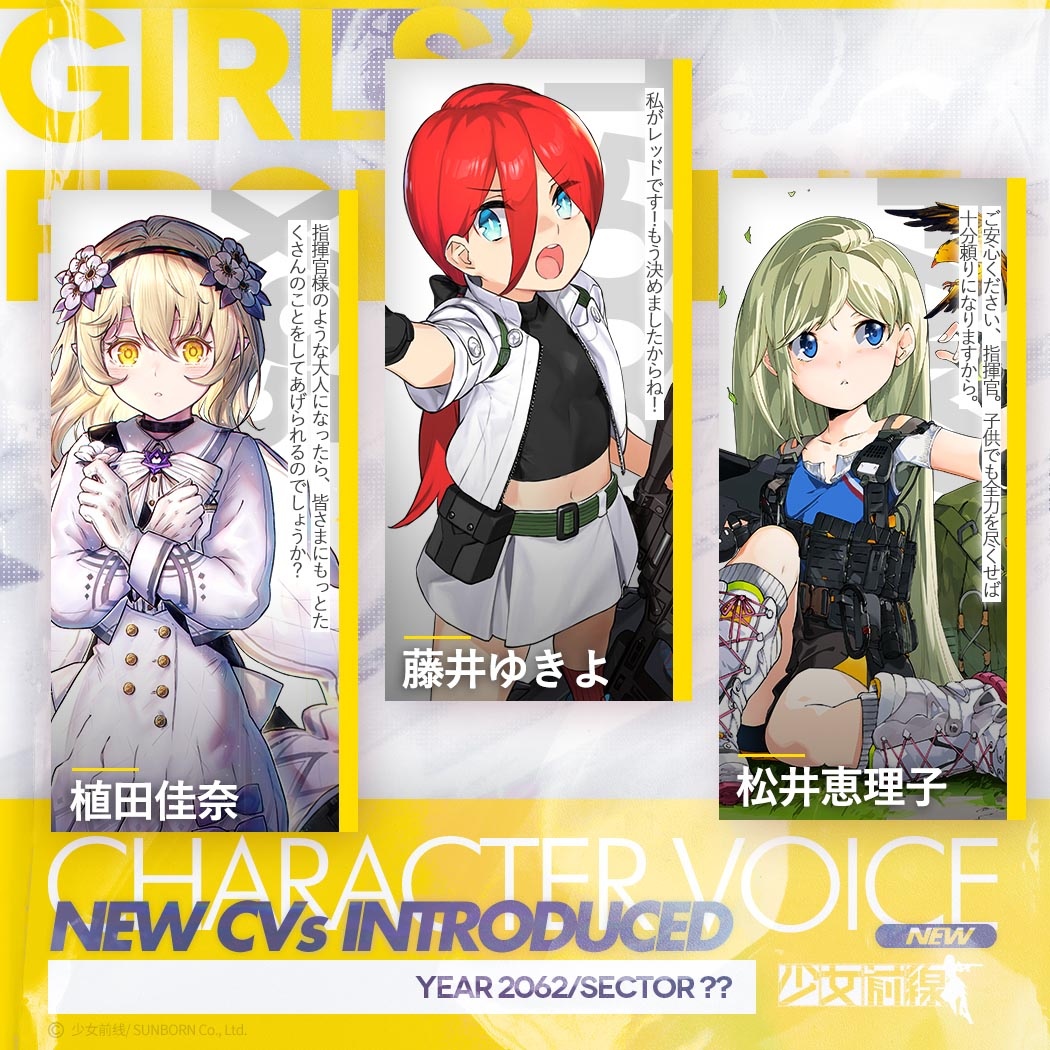 部分戰術人形在心智升級後的台詞也同步實裝聲優語音,獲得全新力量的同時,少女們也對指揮官傾訴更多心聲。本次實裝心智升級後語音的戰術人形為「M500」、「M950A」、「KSVK」、「伯萊塔38型」、「斯捷奇金」、「GSh-18」、「C96」。