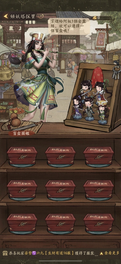 阿奴掌櫃的仙劍商鋪開業啦,「仙劍盲盒」限時出售!消耗「金蠶絲」即可交易獲得仙劍盲盒,打開盲盒即可隨機獲得任一「仙劍人偶」,兌換《仙劍》聯動人物的限定時裝!還有限定聯動隱藏款的主角時裝等待玩家們揭曉!
