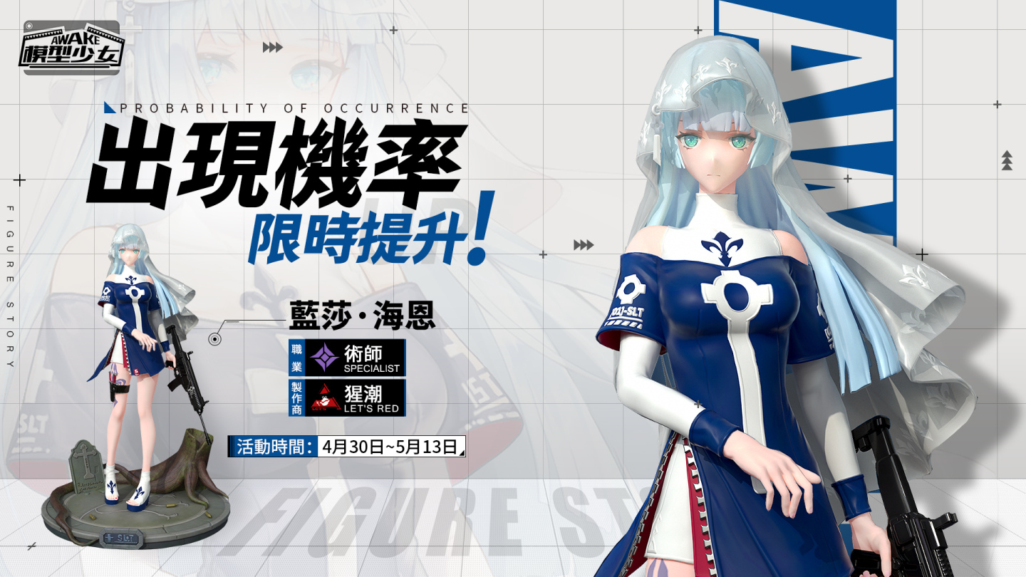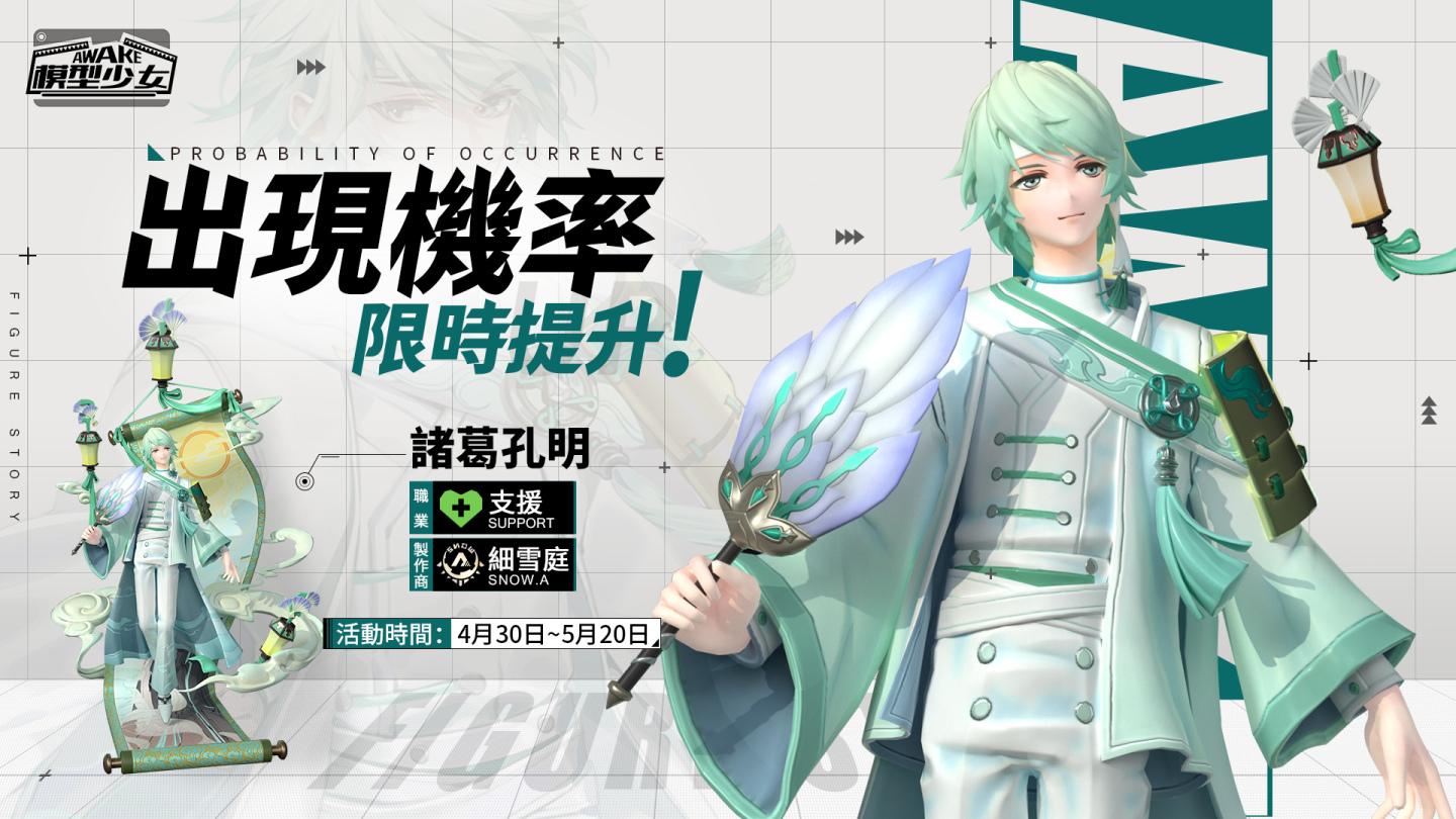《模型少女AWAKE》雙平台好評配信中,於明日起,新角色藍莎‧海恩與諸葛孔明獲得機率限時提升,同時藍莎‧海恩系列活動也即將上線。官方後續將會持續釋出更多遊戲資訊與聯動的相關情報與咨詢,請玩家們持續關注!想第一時間掌握後續情報的玩家,歡迎關注官方粉絲團。