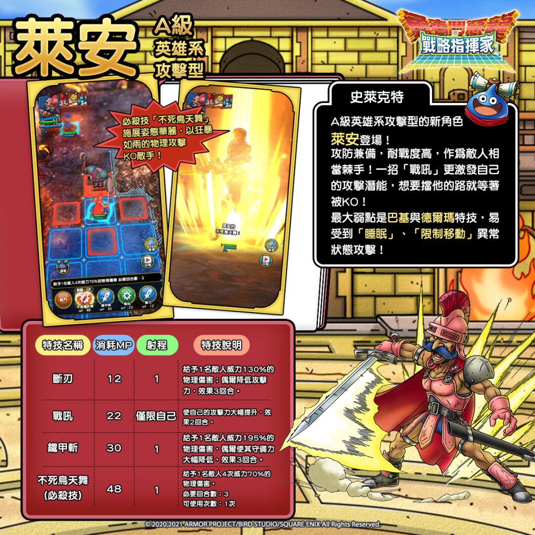 《勇者鬥惡龍 戰略指揮家》國際版目前正進行《勇者鬥惡龍 IV被引導的人們》(簡稱 DQIV)世界為題材的系列活動,全新英雄系夥伴即將陸續現身,更有以 DQIV 中的死亡之山為舞台的新型態玩法「往死亡之山的道路」登場!活動任務中,可讓全新系統的英雄「萊安」成為夥伴,讓萊安成為夥伴後,便能觀看專為每個英雄所準備的「英雄任務」!