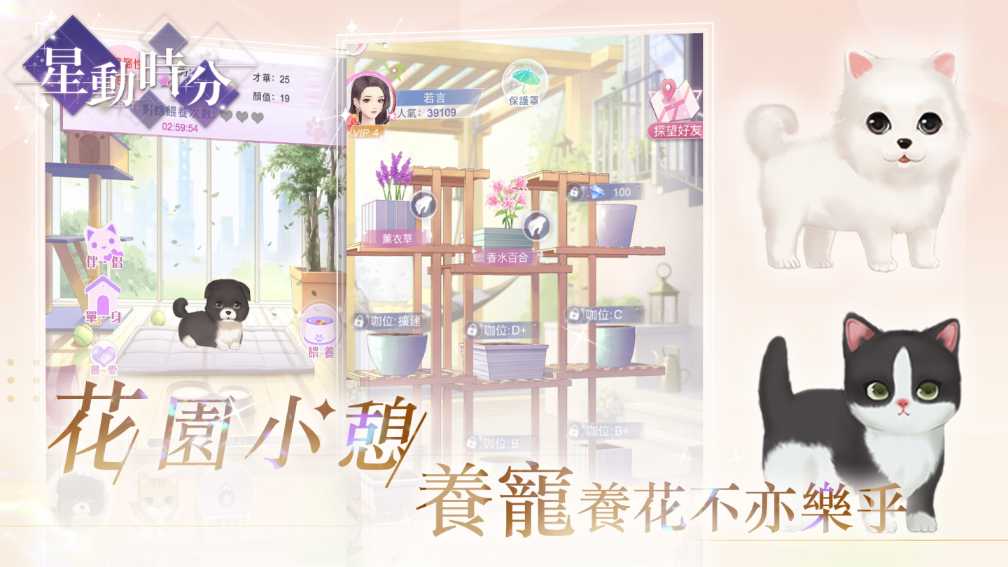 辛苦拍攝一天結束回到家,需要一個療癒的萌竉來治癒,在遊戲中可以領養到寵物,給寵物餵食,提升寵物等級和好感度,同時提升玩家自己的屬性。將寵物培養到成年之後,還可以幫愛寵挑選一個伴侶,讓心愛的寵物不孤單!