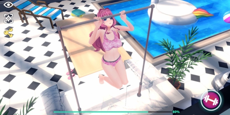 健身系統讓教練能夠進一步提升少女們的實力!,使用道具,讓女孩們做各種運動:腰部訓練、瑜伽球、單槓還有有氧運動。通過健身去提升女孩們的能力值,讓她們變得更強吧!