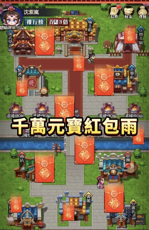 福利1、全天不定時千萬元寶紅包雨:在遊戲進行中,螢幕上會不定時有紅包落下,玩家只要點擊紅包就可以獲得元寶。
