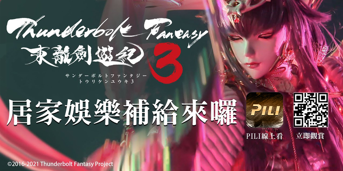 為鼓勵民眾在宅防疫,旗下影音平台「PILI 線上看」推出「居家娛樂補給方案」,提供 20 天免費觀影權限,不僅可觀看《Thunderbolt Fantasy 東離劍遊紀》全系列第 1 季到 3 季、劇場版《Thunderbolt Fantasy 生死一劍》、《Thunderbolt Fantasy 西幽弦歌》等,影片播放中還能發彈幕,並且獨創對劇情發便當及按讚功能,看片有伴不孤單,民眾可以在家線上揪團,安心補課看東離。