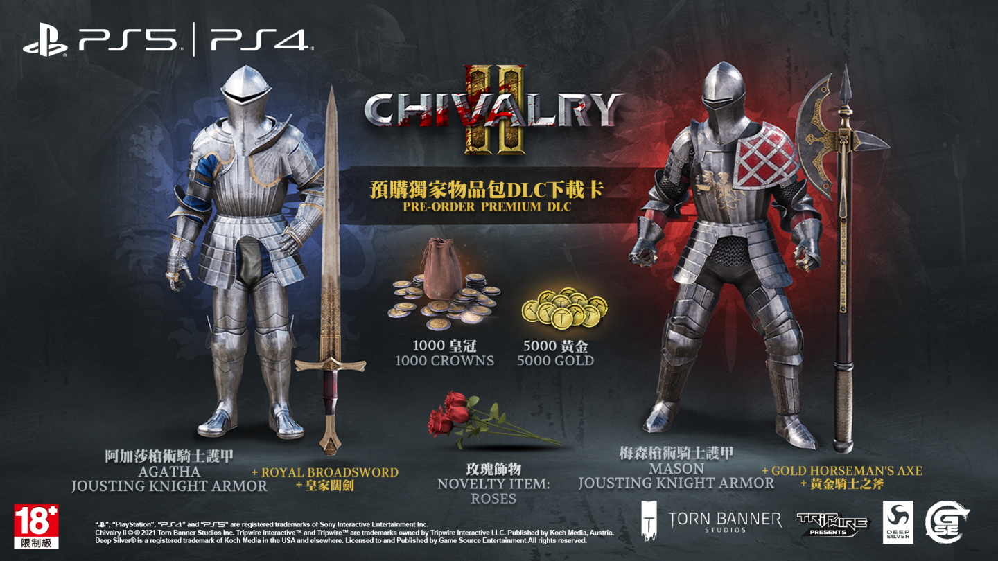 Game Source Entertainment(GSE)宣佈發行,由 Tripwire Interactive 開發及 Deep Silver 全球發行的《騎士精神2》(Chivalry2)繁體中文版,今日釋出官方遊戲宣傳片。繁體中文實體版遊戲即將於 2021 年内登陸 PS4 及 PS5 平臺。
