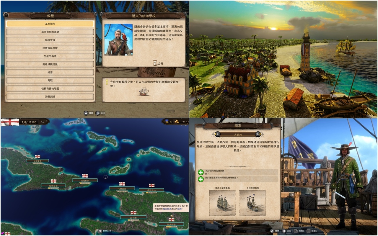 •在四個殖民強國中任選其一:英國、法國、西班牙和荷蘭,分別提供不同的優勢和獨特的遊戲玩法。