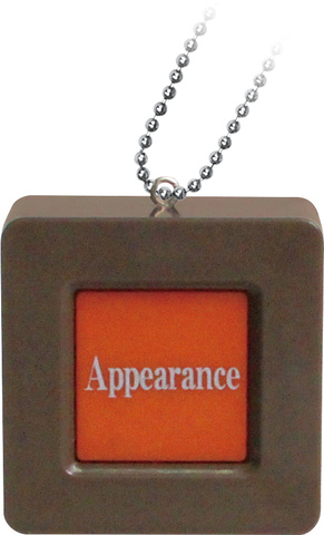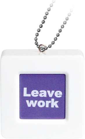 轉蛋玩具的外型就是一顆按鈕方方的,中間寫著各種文字,按下就會播放音樂。一共有五款,「Leave Work」→離開工作=下班!!!這時候當然要播放「Get Wild」,讓自己無論何時何地都可以化身為帥氣的冴羽獠!