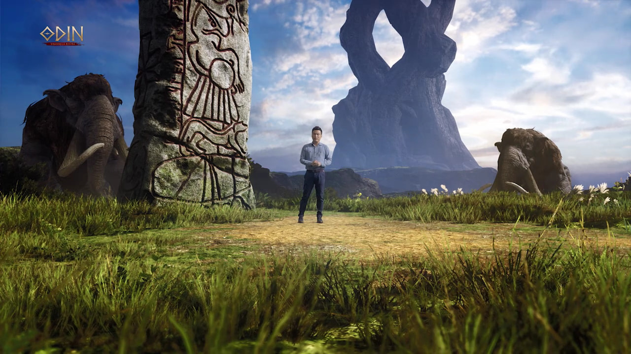 由擔任《奧丁:神叛》開發總監的李漢順 PD、韓國工作室 Lionheart Studio 的金在英執行長、Kakao Games 的趙啓賢執行長和手遊發行事業的李時宇部長一同參與。透過實境技術,可以看到遊戲人物與真人之間的比例關係,龐大威武的巨人對比起來不僅震撼力十足,進一步還能看出《奧丁:神叛》在宏大遼闊的場景與種類繁多的生物上處處精雕細琢的呈現,也不難想像屆時遊戲能帶給玩家的極大沉浸感。