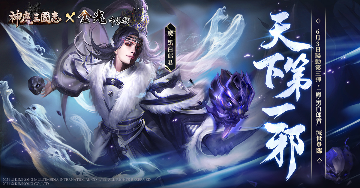 由易亨數位代理發行的策略卡牌放置手機遊戲《神魔三國志》今(3)日發佈最新改版,經典布袋戲 IP《金光布袋戲》聯動第三彈終結來襲,聯動限定武將「魔·黑白郎君」壓軸登場;同時作為聯動最後一彈,三位聯動武將「神·史豔文」「魔·藏鏡人」「魔·黑白郎君」在此次更新中同時開放獲取,聯動即將結束,不可錯過。