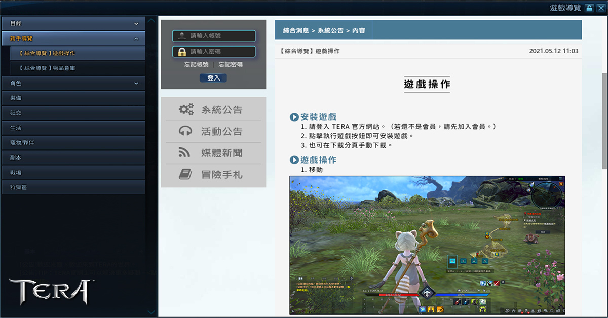 為了使各位冒險者們能夠更加了解 TERA 的世界,「綜合導覽系統」記載了各遊戲系統的詳細使用說明。工具列表中新增了「遊戲導覽按鈕」,進入導覽頁面後可根據想瞭解的功能進行點擊觀看。
