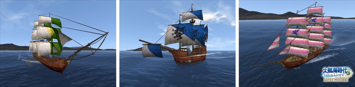 《大航海時代 Online》新增船隻維達(左)、唐‧德‧杜(中),及馬可‧波羅(右)
