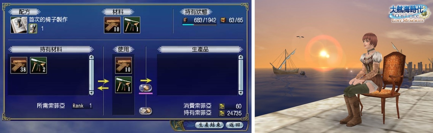 《大航海時代 Online》追究生產出營火或椅子,都可以當作道具進行使用