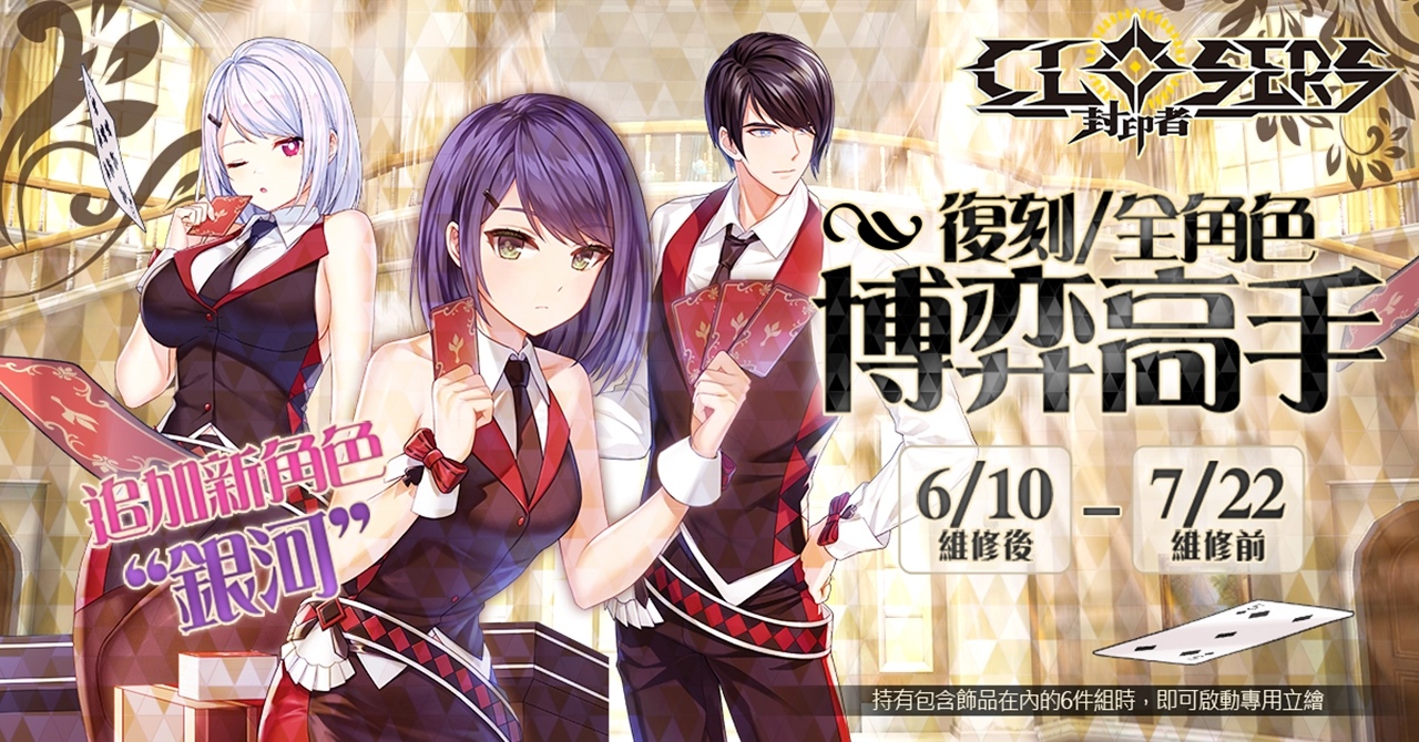 本次不只復刻了經典的全角色時裝「博弈高手」,更特地追加了新角色銀河一角,想一睹銀河化身俐落帥氣又性感的發牌荷官,特工們千萬別錯過啦!