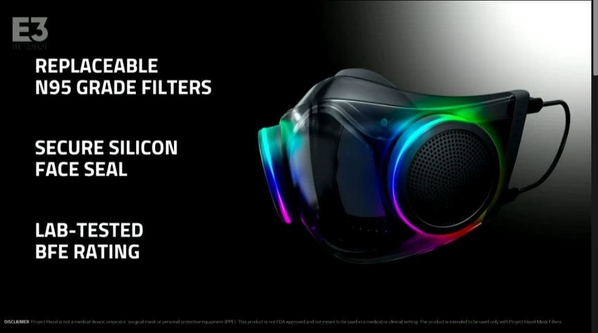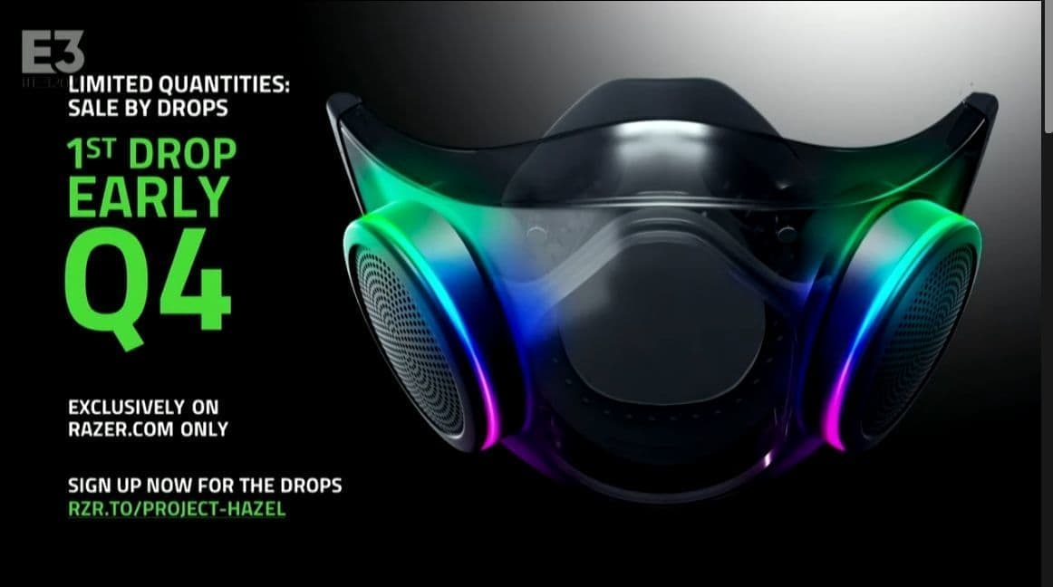 Razer 於 E3 中宣布,預定於 2021 年第 4 四半期(Q4)推出一款新電競口罩「Project Hazel」讓消費者選擇使用。