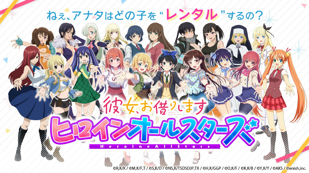 日本 enish 宣布,將著手進行人氣 TV 動畫《出租女友》的首款官方授權改編手機遊戲《出租女友:女主角全明星》(彼女、お借りします ヒロインオールスターズ,中文名暫稱)的開發製作,並預定於 2021 年 9 月在 iOS/Android 等手機平台推出。