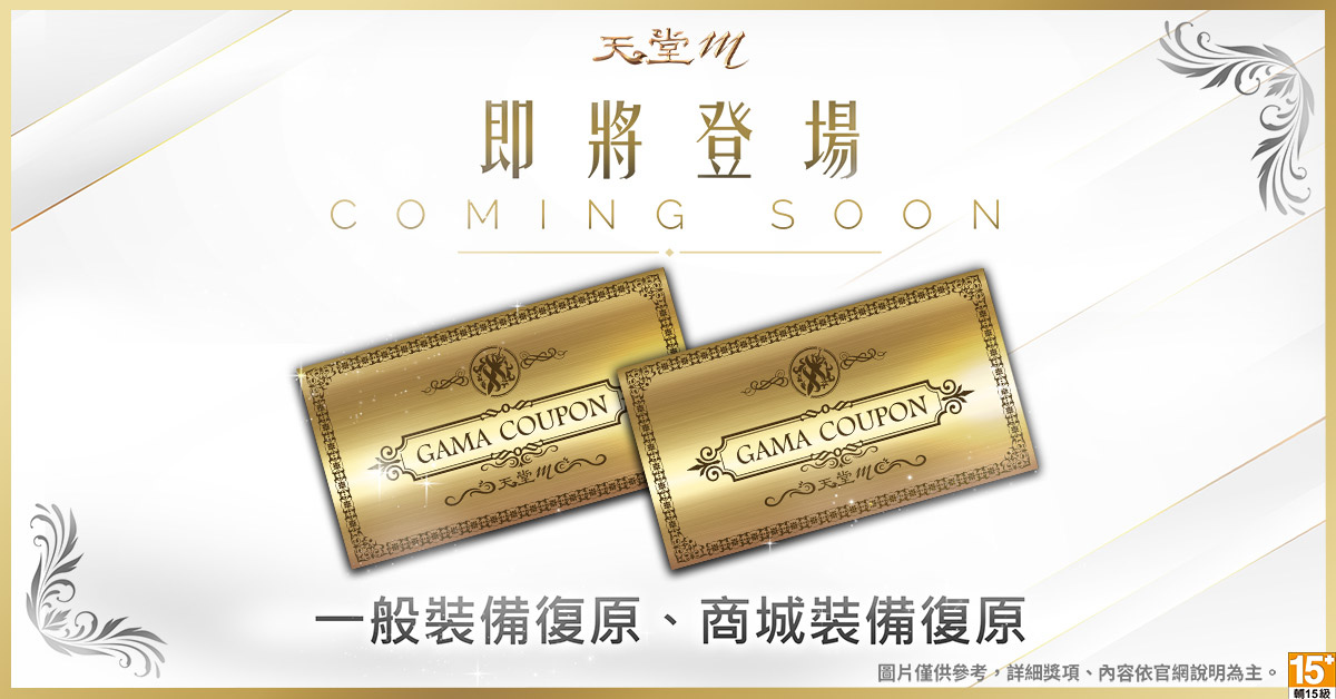 《天堂M》兌換一般裝備復原及商城裝備復原效果的GAMA COUPON共兩張