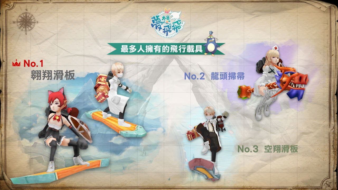 多種飛行載具任你蒐集!乘上滑板與掃帚的瞬間,能夠自在飛行的夢想與回憶瞬間湧上心頭!
