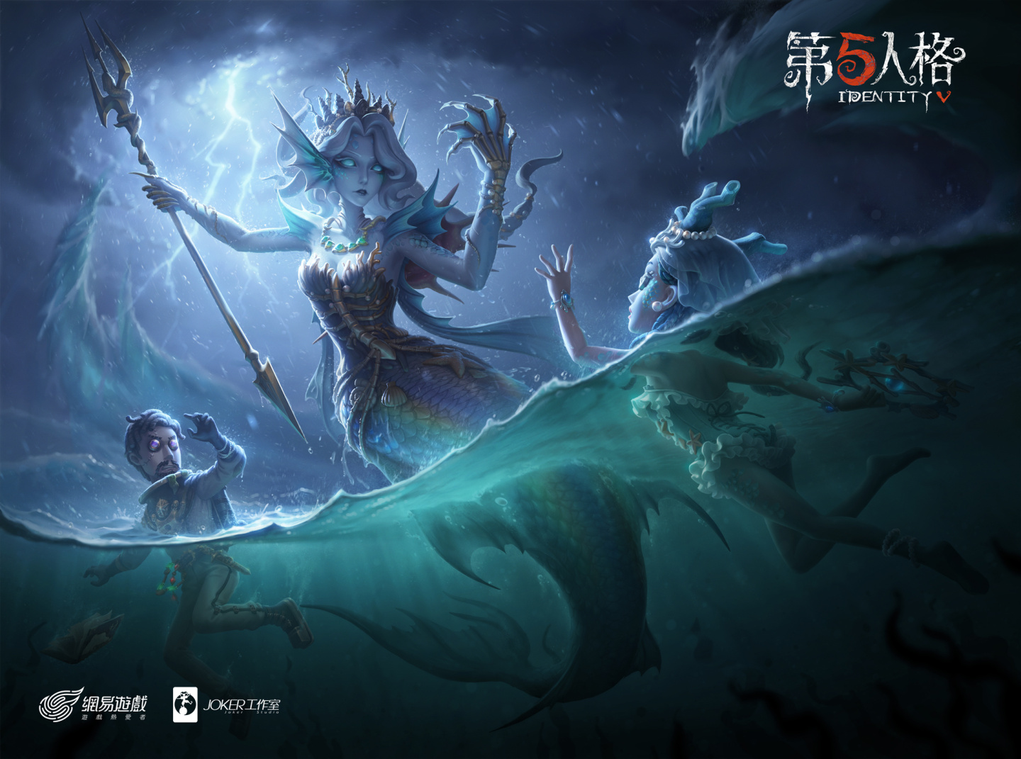 在《第五人格》官方發布的十六賽季.精華 3 故事前導片中,眾角色集體亮相,演繹了一齣懸念十足的海中獻祭儀式。海報裡,遊客們被巨浪掀入海中,美麗的海妖高舉三叉戟,仿佛要用戟尖刺穿一切污濁與罪惡。