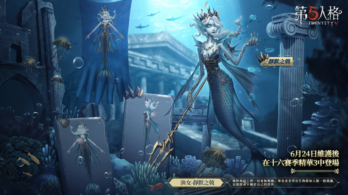 《第五人格》十六賽季.精華 3 在 6/24 日維修更新後已經正式開啟。想要一探人魚的秘密,或是體驗最新浮空型態的全新監管者「漁女」,千萬不要錯過喔!