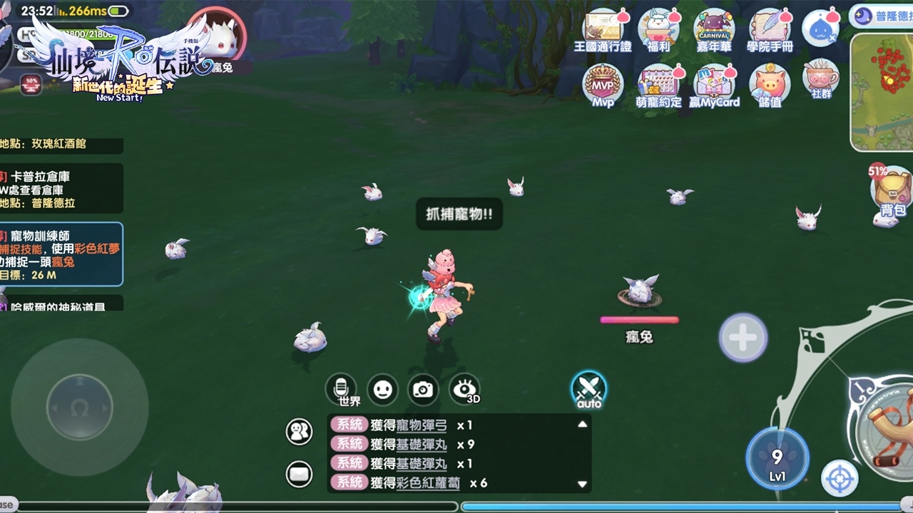 本次寵物系統會首先上線 16 種經典寵物,其中 9 種可以直接從野外捕捉,另外 6 種需要透過進化獲得,還有 1 隻 MVP 皮里恩有機會在活動中直接獲得哦!波利、瘋兔等高人氣魔物都可以作為寵物,伴隨玩家在野外自由旅行。這些可愛萌寵還可以和玩家互動,並提供戰鬥增益,是玩家在大陸探險不可或缺的好夥伴。