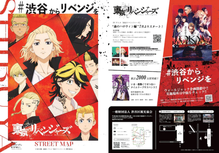 和久井健原作漫畫翻拍電影《東京復仇者》的街頭海報刊出地點目前已經於「SHIBUYA STREET MAP」上公開。由「SHIBUYA WALL-JACK」發起的這個企劃,刻意以作品中主角花垣武道加入的東京卍會活動據點涉谷展開,「SHIBUYA STREET MAP」將從 7/1 起於涉谷站前八公廣場、遊客中心、涉谷區觀光協會等地發送索取。