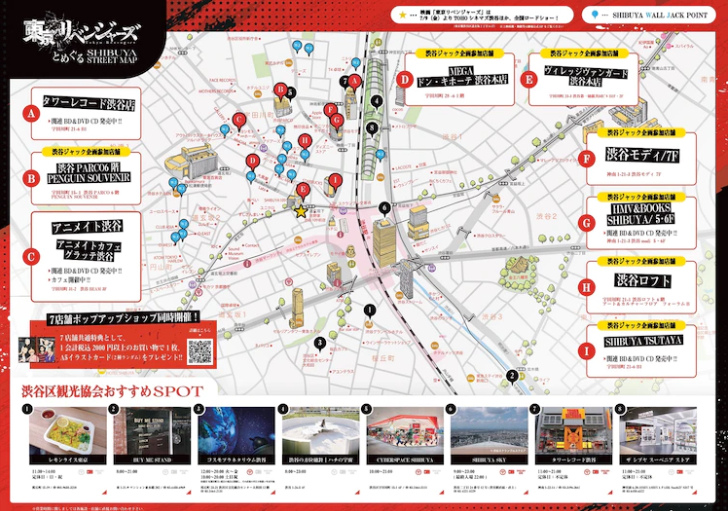另外「涉谷 SHOP-JACK」企劃中將會於特定店鋪販售《東京復仇者》的原創周邊,目前公開七間實體店名單,同樣可於「SHIBUYA STREET MAP」上找到標註位置。為讓這次宣傳活動更加擴散,於推特、IG 投稿《東京復仇者》相關海報、傳單、涉谷戶外廣告等相關宣傳照片,便可參加抽獎,詳細參加辦法將會於 7/1 的活動網站上公開。