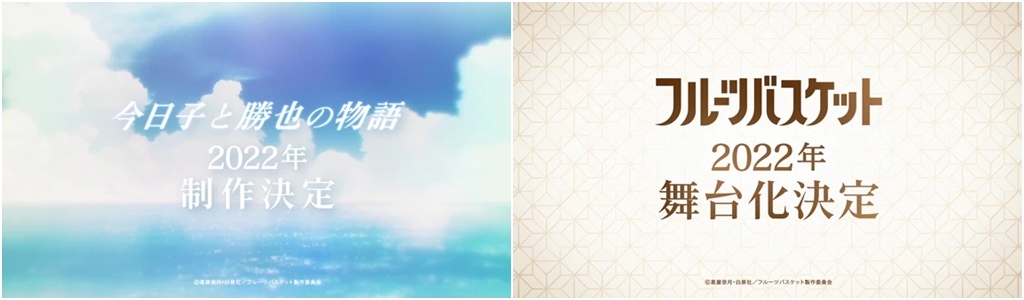 另外《魔法水果籃》也將改編為舞台劇,同樣預計在 2022 年展開公演。官方還公開了「電視動畫《魔法水果籃》播放完畢紀念感謝影片」,收錄了主演聲優共 21 人的簽名留言版、角色登場一幕和台詞,影片最後面是漫畫原作同時也擔任這次動畫監修的高屋奈月老師所繪製的簽繪留言板。