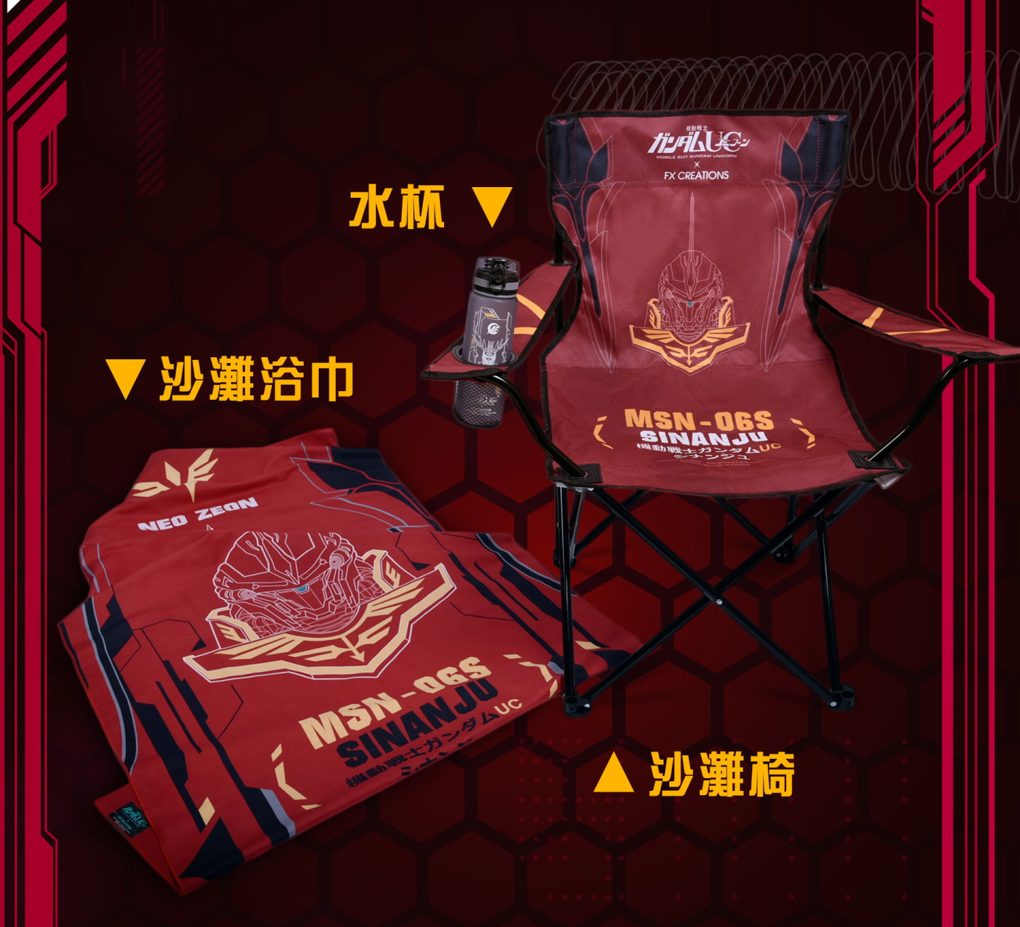 這次小物系列竟然有沙灘椅,真的是太酷了,還可以搭配新安洲款沙灘浴巾,和鋼彈水杯系列,這麼酷的周邊小物怎麼能不收集呢?