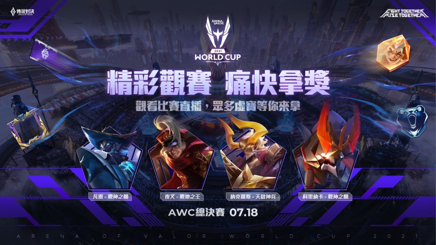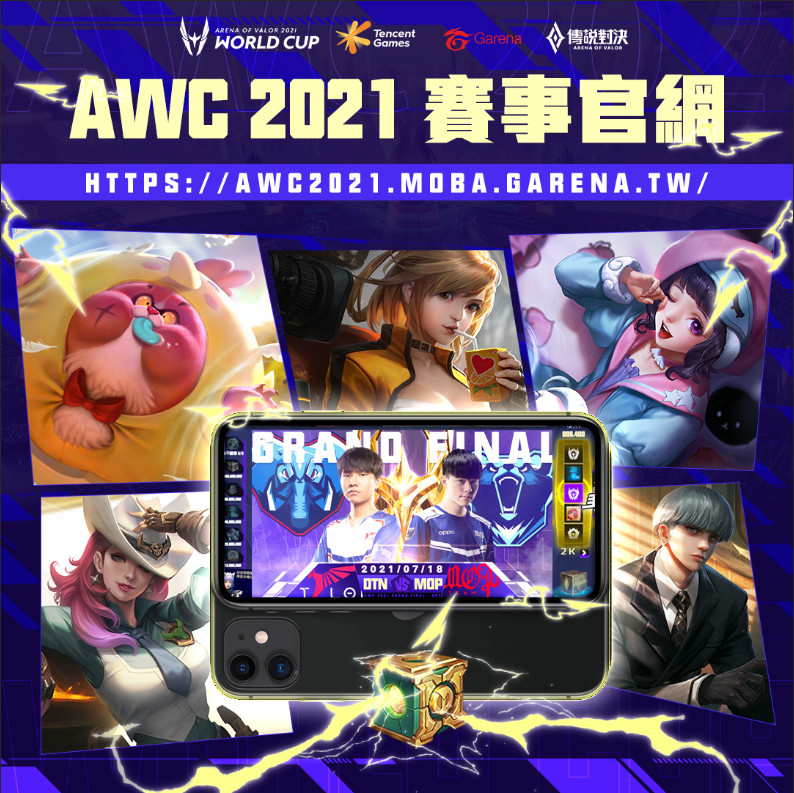 AWC 世界盃是全球最具盛名的傳說對決國際賽事之一,今年的賽事吸引了來自 9 大賽區的 16 支隊伍參賽。 AWC 2021 採全線上模式舉行,為滿足來自世界各地的粉絲,所有比賽都在許多媒體平台上進行現場直播,並附有 5 種語言的本地解說,包括英語,印尼語,中文,泰語和越南語。