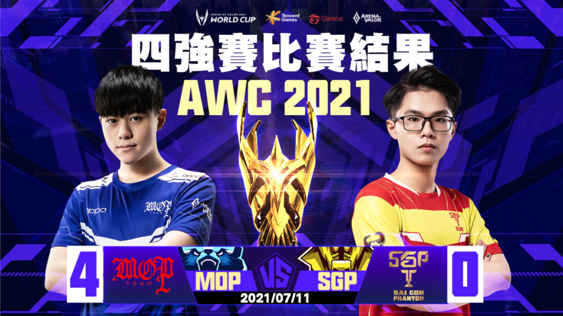 2021 年 GCS 春季職業聯賽首次獲得冠軍的 MOP,即使是第一次參加國際賽事,仍以出色表現證明了他們在世界的強大實力。尤其是在準決賽中 MOP 以 4:0 的比分輕鬆擊敗來自 AOG(越南)賽區的 Saigon Phantom(SGP),最終成功敗部復活。尤其, 曾在 2019 年的 RPL 職業聯賽中為 Mega Esports 效力的 Kawhi 和 YeQu 兩位選手,也藉由這次世界賽的表現,進一步向泰國代表隊證明實力。