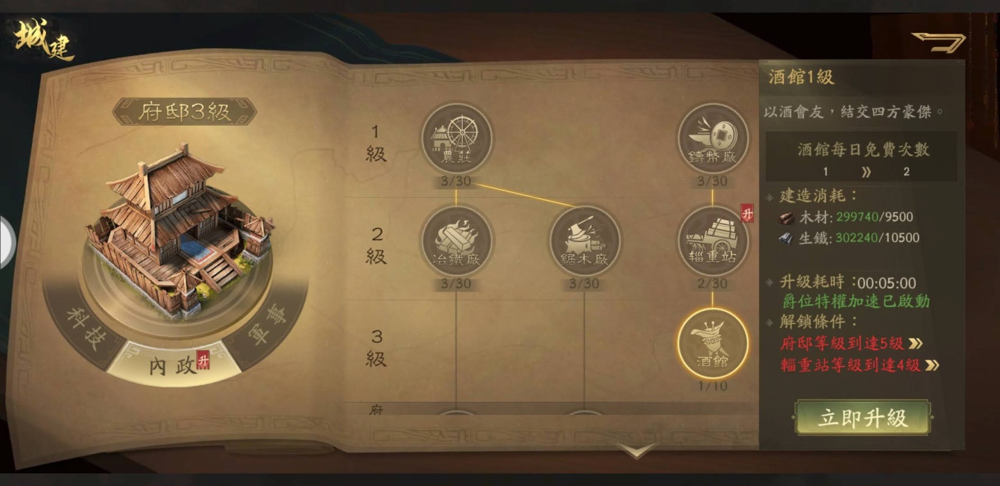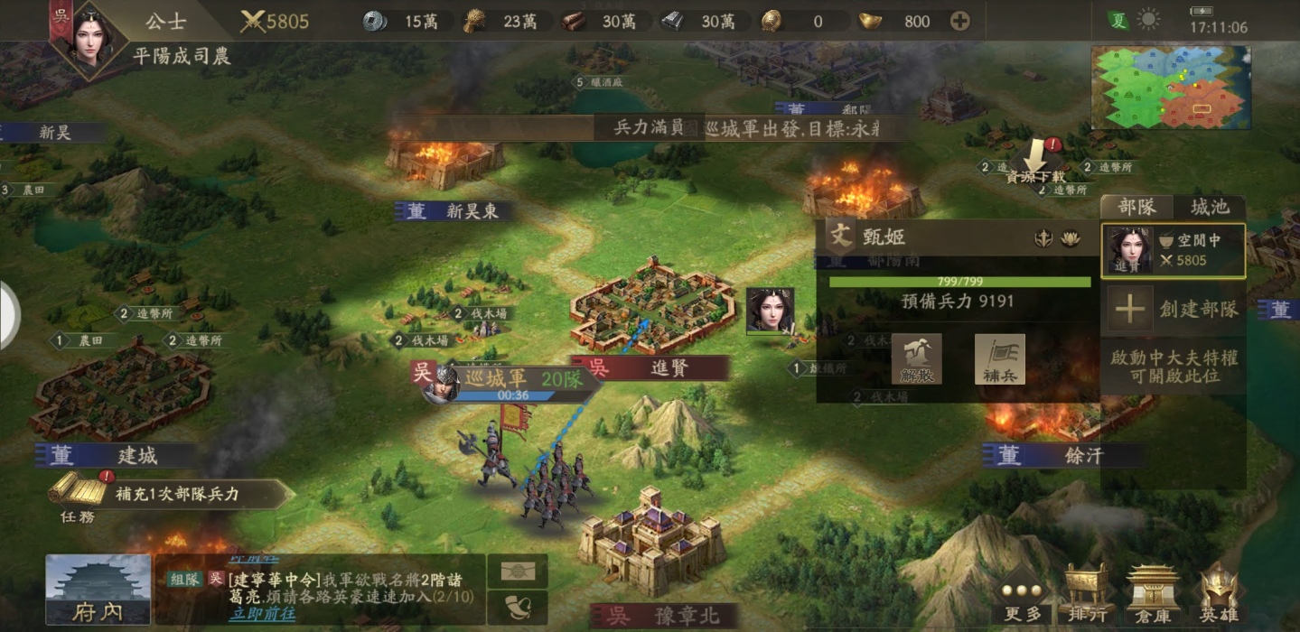基本上攻打、佔領、召喚將士英雄、培養英雄、練兵、建築升級、治理國家等,都已經是一款策略遊戲必備的標配了,《三國:英雄的榮光》基本都有了,介面操作上也都標示清楚、任務設計與開啟各項遊戲功能也很清楚順暢,玩家倒是可以循著指示玩下去。