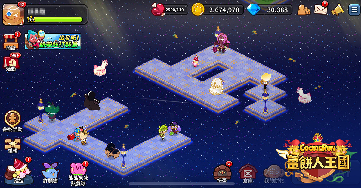《薑餅人王國》核心玩法不外乎要建設並妝點自己的專屬王國,並隨著領土跨張讓王國更加華麗。在這次改版後,王國裝飾的功能將更顯人性化,官方將開放餅乾屋的自選造型功能,其中包括【甜蜜巧克力屋】、【綠茶蛋糕屋】、【熊熊果凍屋】...等多元的餅乾屋選擇讓玩家的王國帶來更多夢想般的變化。