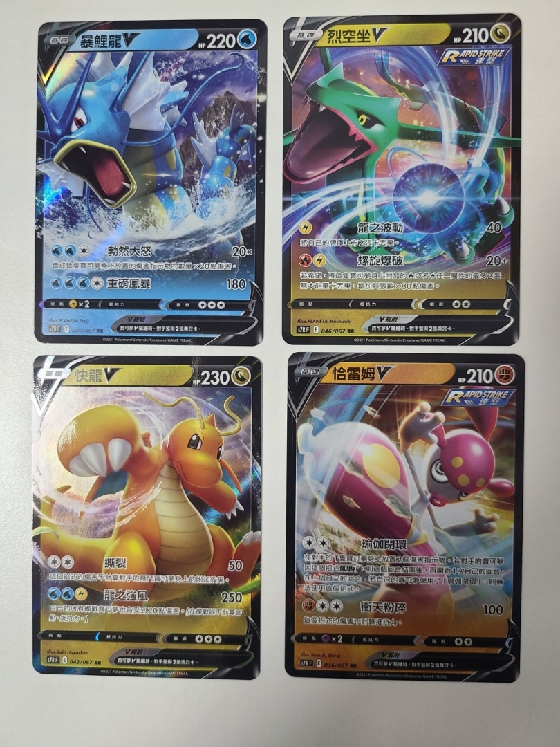 不過,就實際拆卡來看,如果玩家想抽到這次主視覺主打的寶可夢,直接拚卡盒出率相信會比玩家一包一包試手氣要來得有機會(除非玩家歐氣沖天?);同時還有機會抽到例如像是「快龍V」、「鋁鋼龍V」、「灰塵山V/VMAX」之類強卡,對想要構築龍屬卡強化自己牌組的玩家來說,可以選擇與搭配的選項也多得多,玩家可以自己衡量考慮。