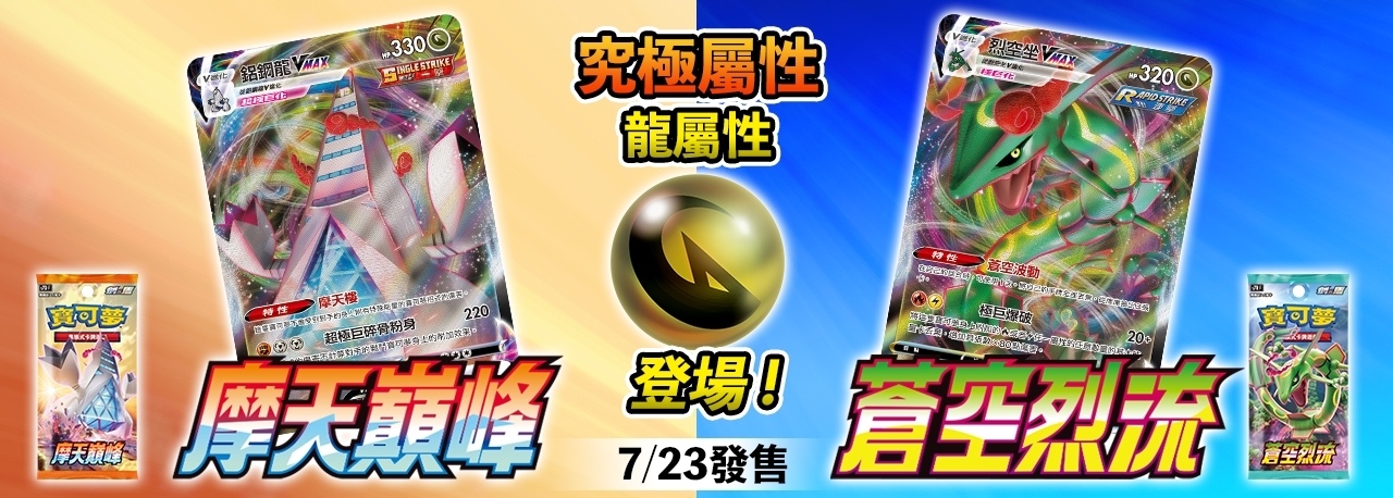 日本 Pokémon 推出、傑仕登在台灣代理發行繁體中文版的《寶可夢》實體卡牌遊戲《寶可夢集換式卡牌遊戲》,繼之前的「伊布英雄」與《Pokémon GO》合作企劃「維羅博士」卡牌後,如今又再度宣布,將於 7 月 23 日推出分別以超極巨化「鋁鋼龍/烈空坐」作為主視覺設計,「劍&盾」系列最新擴充包「摩天巔峰/蒼空烈流」讓玩家們強化自己牌組!