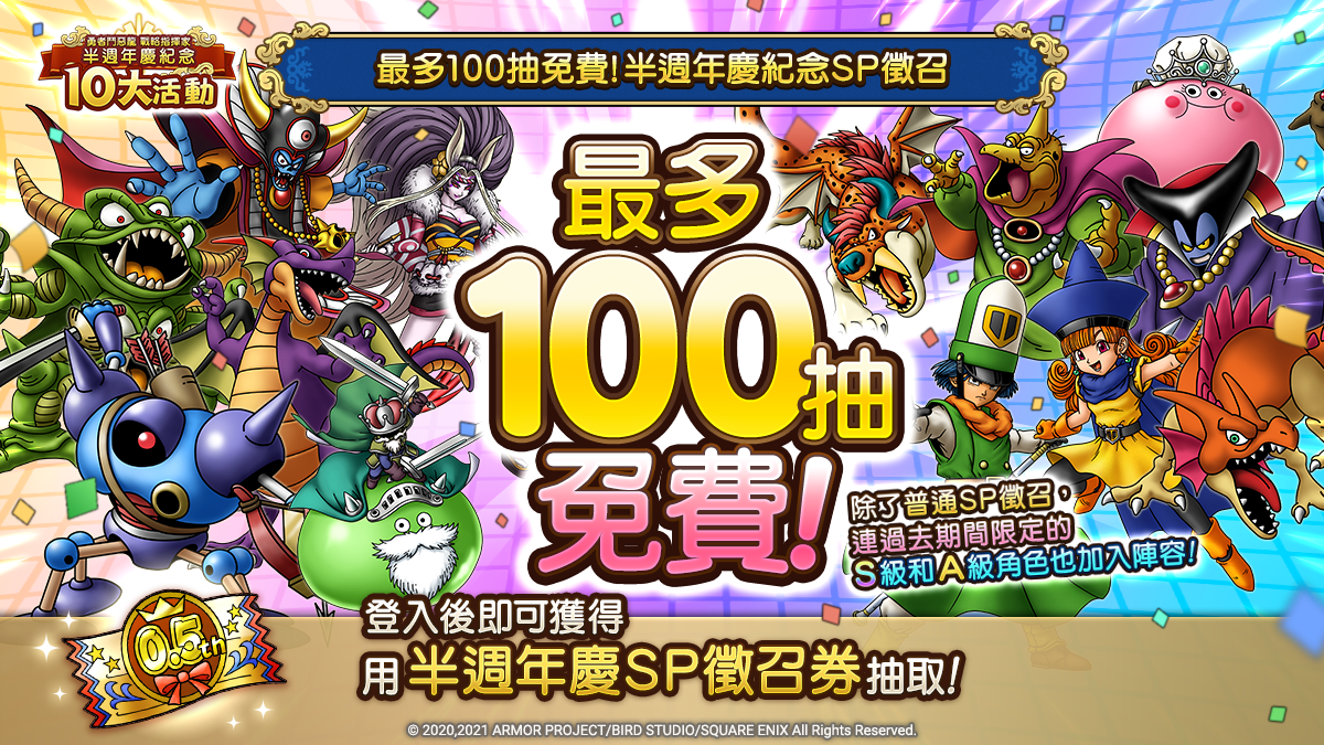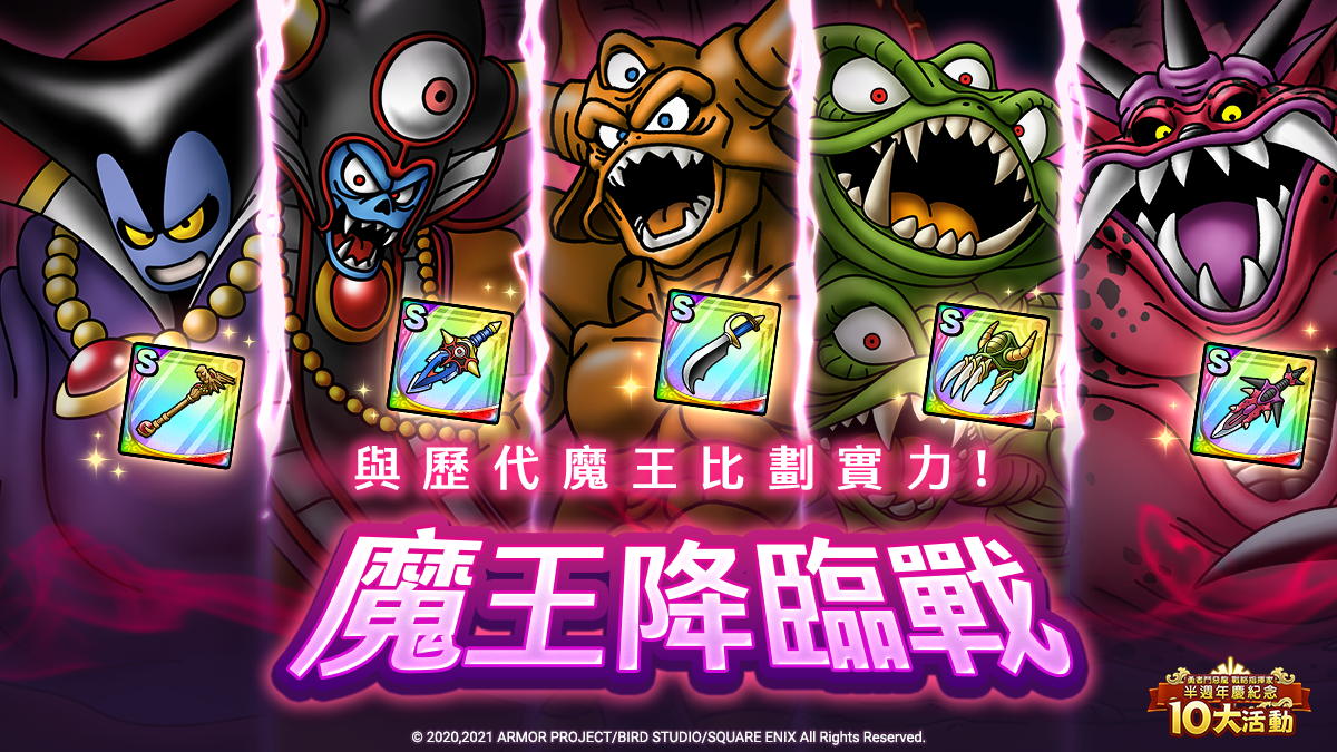 由 SQUARE ENIX 直營,《勇者鬥惡龍》系列手機遊戲最新作《勇者鬥惡龍 戰略指揮家》國際版迎來半週年,為了感謝玩家們一直以來的支持,於今(21)日展開歡慶半週年紀念系列活動,歷代魔王攜帶限定 S 級裝備等你來挑戰,更有大量好禮要回饋給所有玩家,活動期間登入寶石大方送,再加碼送出大量徵召券,最多可獲得免費 100 抽!