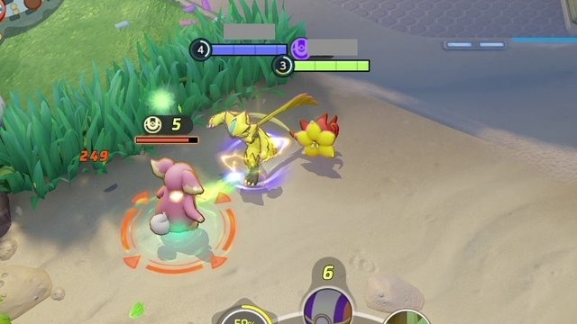 在進攻時,由於本作是一款 5v5 遊戲,因此玩家前進時可以自由制定戰術決定上中下三路要怎麼去分配。基本上,會推薦上下路各兩人、中路一人的戰術來展開攻勢。其中中路的寶可夢位置最重要,可以趕在對方之前先把中央的野生寶可夢擊倒來快速提升等級,也能視狀況支援上下路。