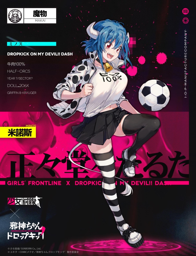 《少女前線》官方先行公開與《小邪神飛踢》聯動角色,包含聯動特典衝鋒槍人形「小邪神」、聯動特典機槍人形「花園百合鈴」、聯動特典突擊步槍人形「梅杜莎」、聯動特典霰彈槍人形「米諾斯」與聯動特典步槍人形「佩珂拉」!