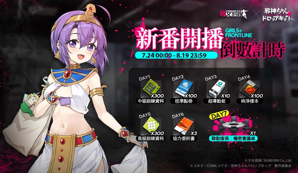 由龍成網路代理的槍械擬人戰術遊戲《少女前線》今(23)日宣布,將與日本人氣動漫作品《小邪神飛踢》進行聯動合作,搶先釋出聯動人形與限定簽到活動,詳情請見以下介紹。
