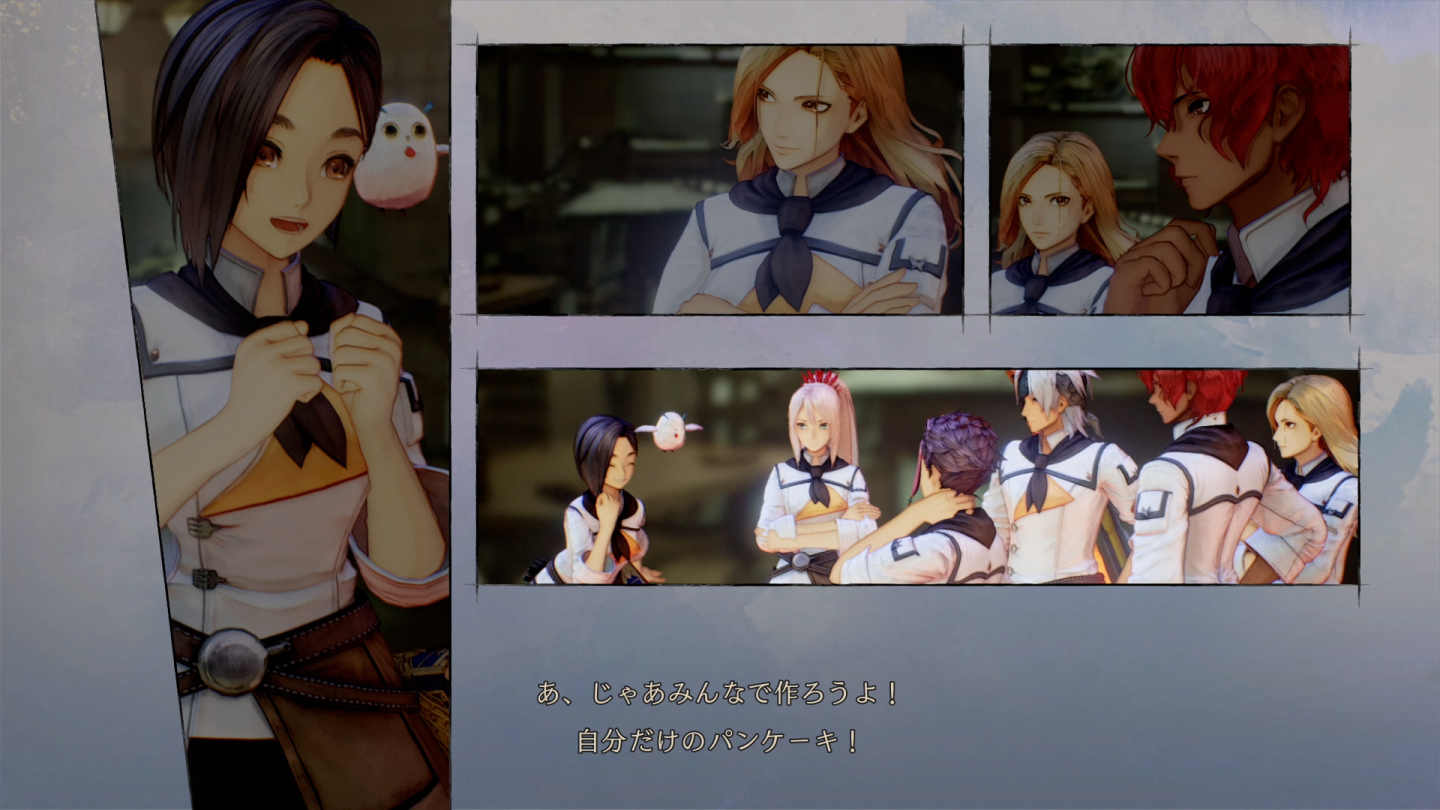 而在這次的生放送中,製作人也為玩家們帶來遊戲最新的情報內容與畫面讓玩家們欣賞。首先,就是系列玩家們所熟悉,能夠享受到旅途中各種豐富對話內容的短劇系統,在這次遊戲中也將會更加進化,讓玩家們除了嚴肅的故事主線外,也能欣賞到夥伴們其他各式各樣有趣的一面。而且這次的短劇演出,還將會透過 3D 表現更加進化,並將玩家們設定裝備的服裝反映出來,就連場所與時間也都會實際演出,帶給玩家們更加真實的存在感。