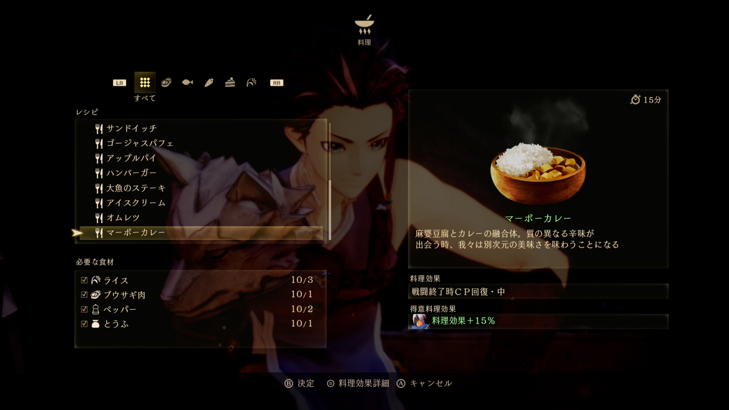 另外遊戲中,玩家們所熟悉,能透過食用這些料理帶來各種戰鬥 Buff 效果的料理系統也依然存在,每個角色都會有其各自專屬的擅長料理,玩家們如果委託角色進行各自擅長料理的製作,將會有專用演出動畫,也為遊戲帶來更多樂趣。