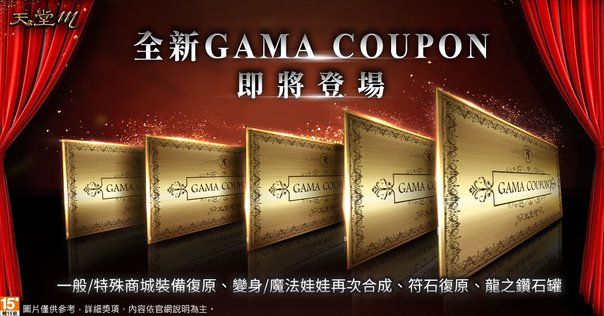 死神改版後可使用100天幣兌換5張GAMA COUPON,包含:「一般裝備復原」有兩種資料統計時間,可自由選擇回復時段、「特殊變身/魔法娃娃再次合成」可獲得變身或魔法娃娃擇一重新挑戰合成的機會、「特殊商城裝備復原」可以復原不同屬性的同類型裝備,此外,全新效果「符石復原」可復原曾經因強化失敗而消失的同屬性符石、全新效果「龍之鑽石罐」根據玩家付費取得的龍之鑽石與龍之聖水的使用量,返還相對應的龍之鑽石罐。
