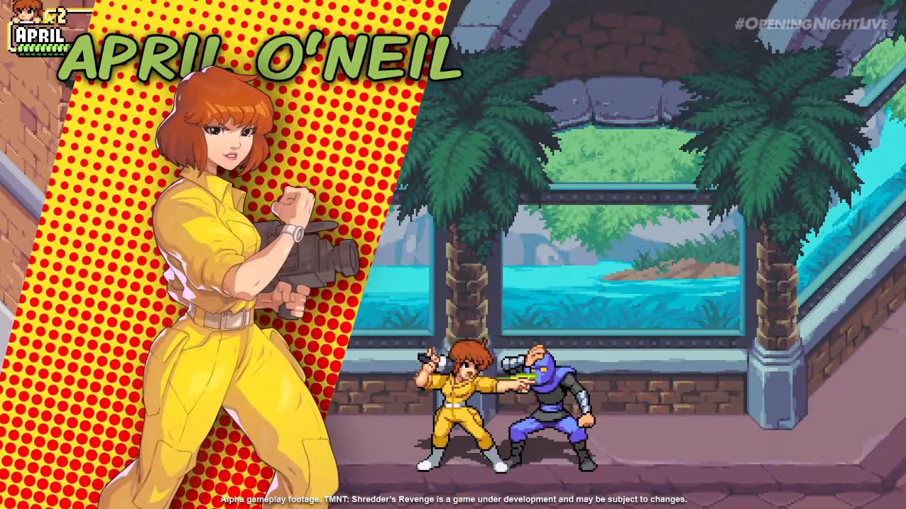 法國遊戲開發商 DotEmu 在 Gamescom 開幕夜發表新作《忍者龜:許瑞德的復仇》(Teenage Mutant Ninja Turtles: Shredder’s Revenge)最新宣傳影片,宣佈忍者龜的人類盟友,作為記者的艾波歐尼爾將參戰,將可以與這些烏龜忍者一起踹爆敵人的屁股。