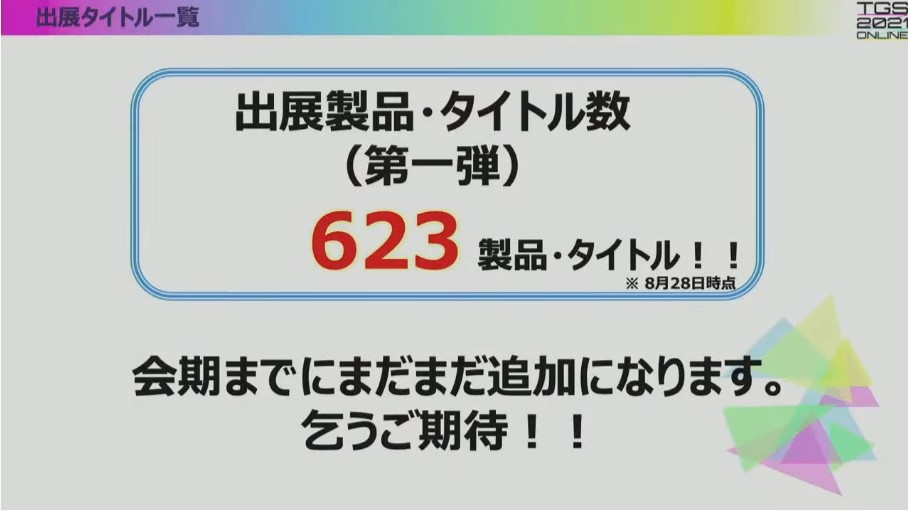 除了有驚人的參展廠商數量外,本次的出展作品.遊戲數量也是非常驚人。在今天節目中,官方公開目前首波第一彈共有 623 款作品參展,今後也將會陸續追加更多參展作品與玩家分享。同時,官方也趁著這次機會,公開展期四天的官方節目時間表讓玩家們參考依據,玩家可以依照自己喜好,選擇喜歡的廠商來欣賞節目。