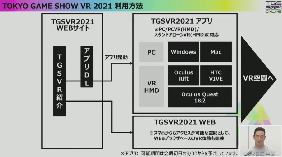 另外如上所述,這次 TGS 2021 首度新增線上 VR 會場展區,玩家們可以透過官網下載 App 來進行安裝,並藉由電腦等 VR 裝飾頭罩來欣賞(本次 VR 會場也會支援手機連線進入)。