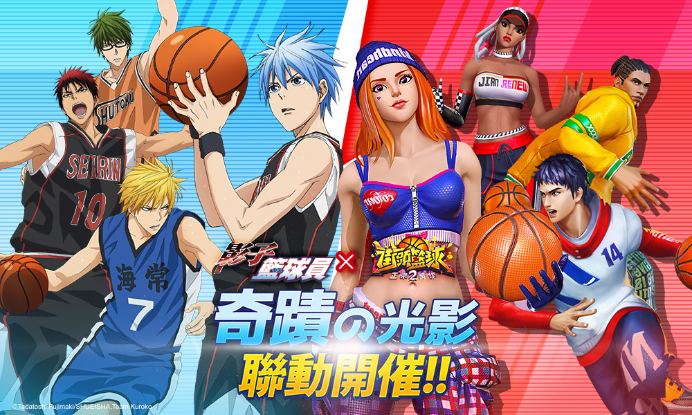 5X Games 今(2)日宣布,3V3 真實籃球競技遊戲《街頭籃球 2:正宗續作》將推出與日本人氣知名籃球動漫《影子籃球員》(原名「黒子のバスケ」,也稱「黑子的籃球」)聯動的相關內容,並且預告將於 9/9 聯動正式開始,同時黑子哲也、火神大我、黃瀨涼太、綠間真太郎…等角色也會陸續登場。