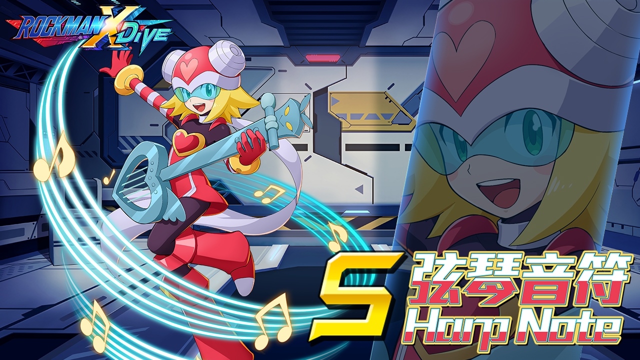 本次「流星洛克人」聯名活動的第二位登場角色,就是女主角「響美空」與外星人「Harp」電波合體的「Harp Note」!「Harp Note」擅長使用音波攻擊,因此她的技能就由此延伸而出。第一招「弦樂機槍」可無視地形對路徑上的敵人進行攻擊並且造成無法行動,如果安裝強化要素後還能召喚出音箱進行援護射擊。