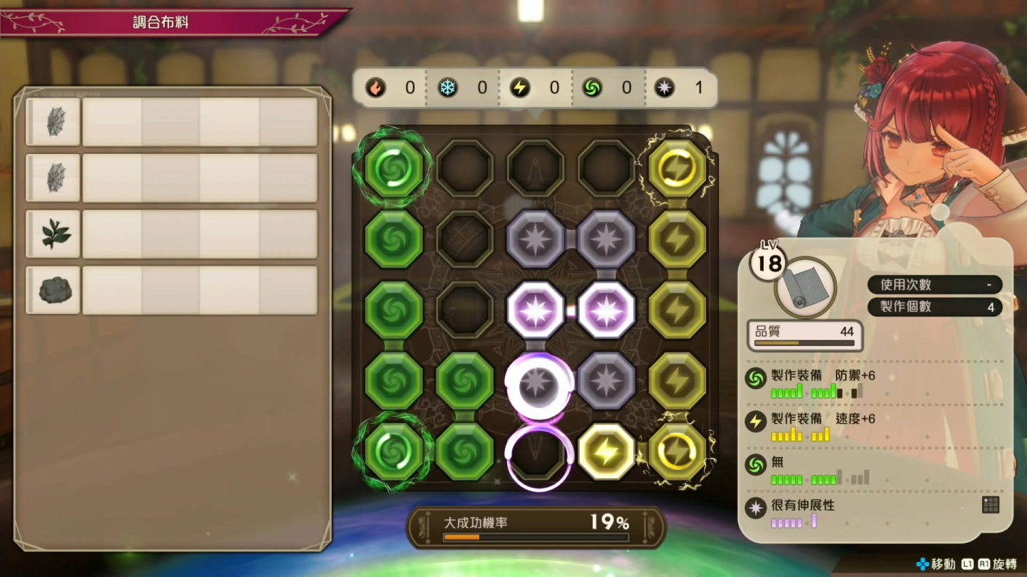 雖然在前作蘇菲已經成為能讀當一面的鍊金術師,不過這次用了穿越異世界的設定,原本的鍊金知識都要從頭開始?這次蘇菲在原野上探索、戰鬥、採集都會獲得新的配方發想,但這點設計也很像《萊莎》的配方研發機制。鍊金系統則是回歸到「不可思議」的調和面板風格,類似益智拼圖的玩法,可調整鍊金成份,提昇品質、屬性等,利用面板的屬性連結更加提昇效果。