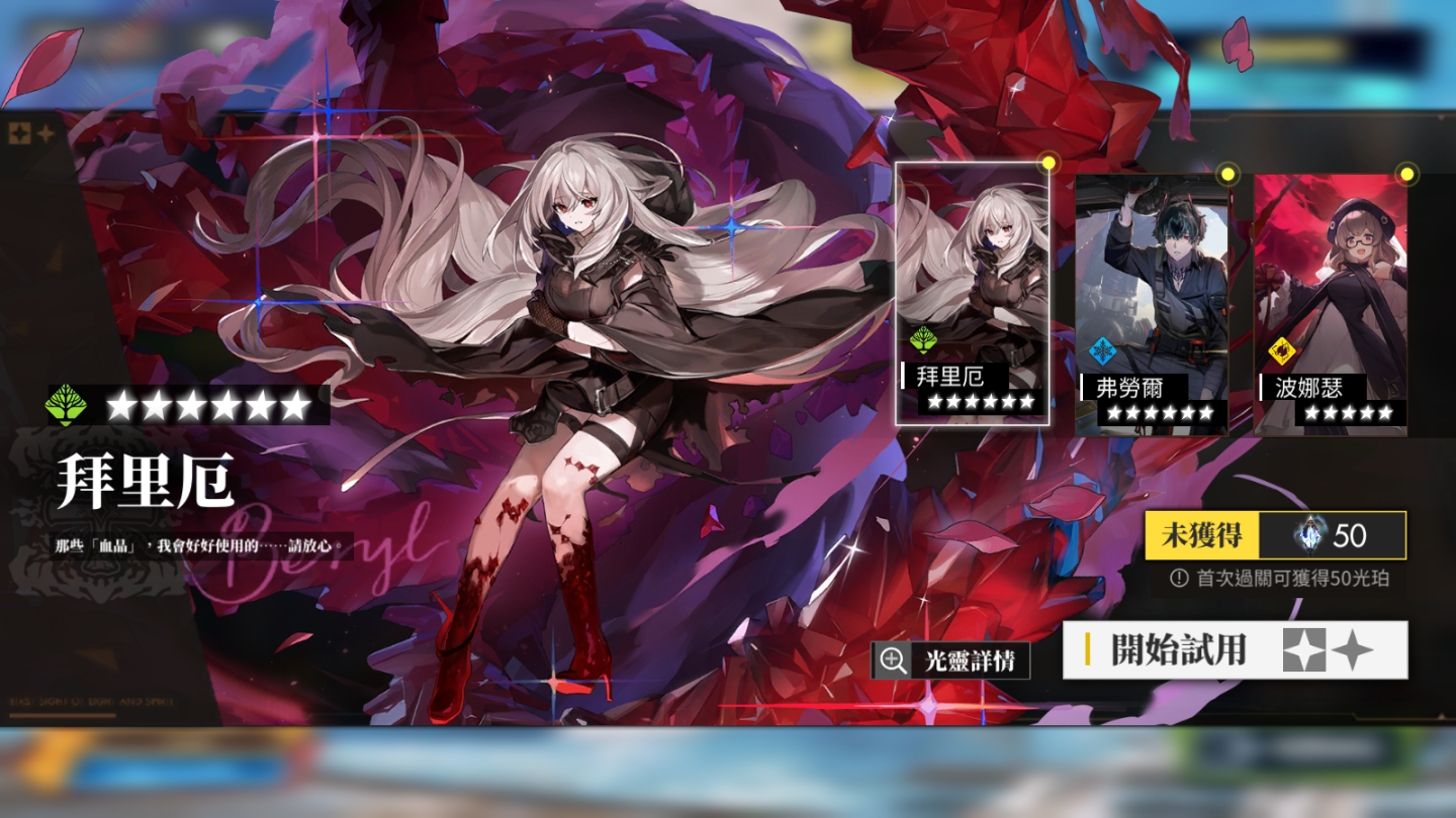 可以搶先體驗覺醒跟等級都滿級的「拜里厄」、「弗勞爾」、「波娜瑟」的戰鬥能力,由於只能使用他們單人進行戰鬥,在限制條件內怎麼過關就是考驗玩家的指揮能力。