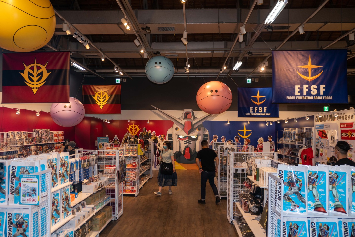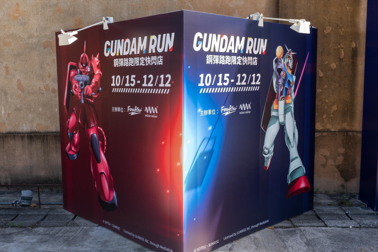 「鋼彈路跑限定快閃店」於華山東 3A 烏梅酒廠開幕,以顏色與旗幟營造「地球聯邦」及「吉翁公國」兩陣營對抗感,並同步推出快閃店限定品,引進日本動漫周邊品牌 COSPA 鋼彈相關周邊。