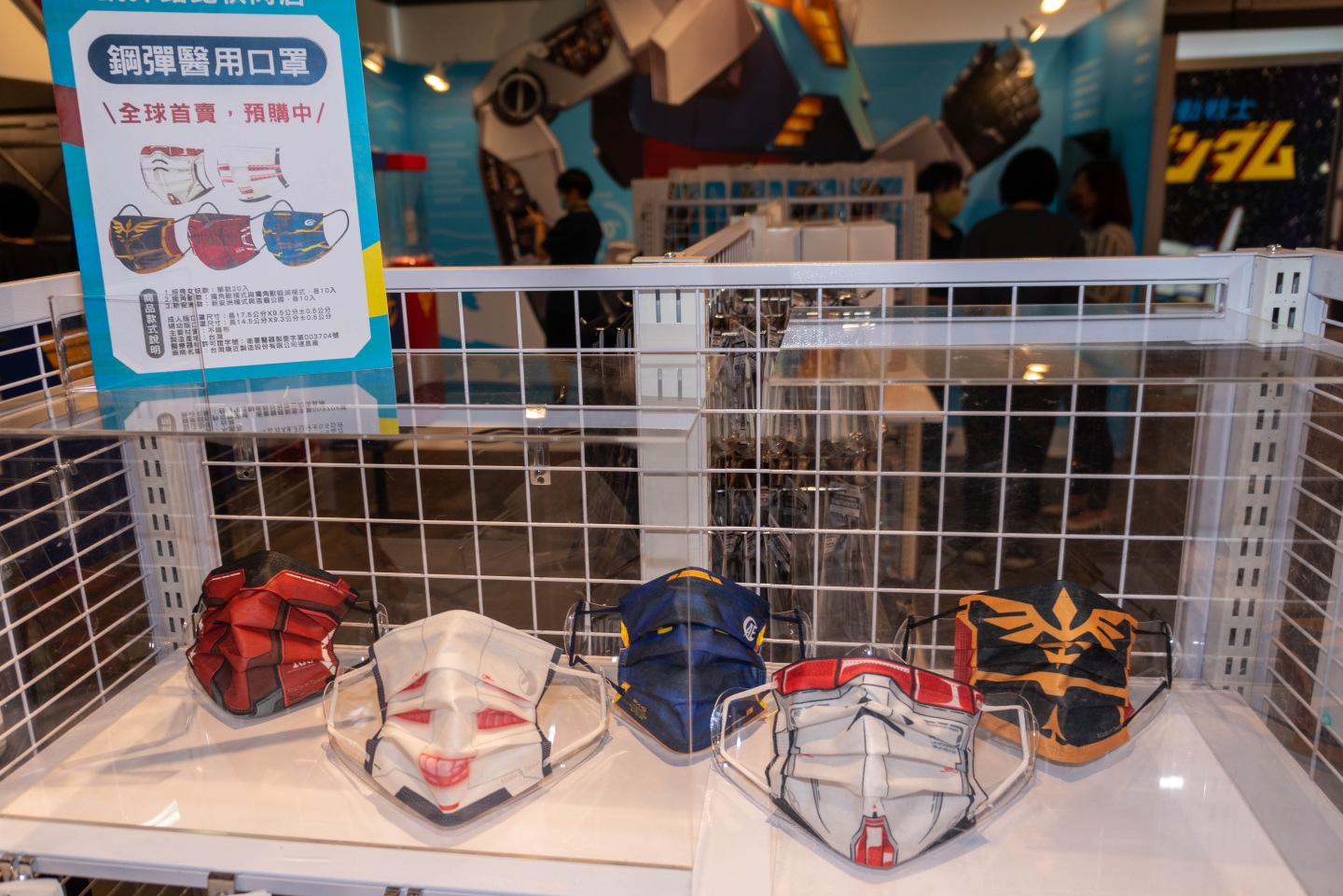 「鋼彈路跑限定快閃店」與台灣口罩大廠「台灣康匠」旗下的匠心聯名打造「鋼彈聯名口罩」,11月在快閃店首賣,現在即可預購。地球聯邦陣營口罩系列有獨角獸模式、毀滅模式。吉翁公國陣營則是新安州胸口鮮明圖騰的吉翁公國款及機體頭部的新安州模式兩款,此外推出以獨角獸鋼彈2號機「報喪女妖」毀滅模式為設計概念來源的報喪女妖數位迷彩款。